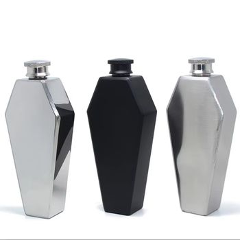 3,5 oz Alcohol Flagon Hexagon Hip Flask Cool Men Drink Gifts Christ Church Acero inoxidable Novedad Ataúd Forma Licor Flask